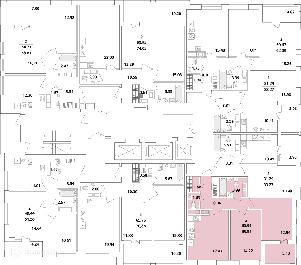 Площади квартир
