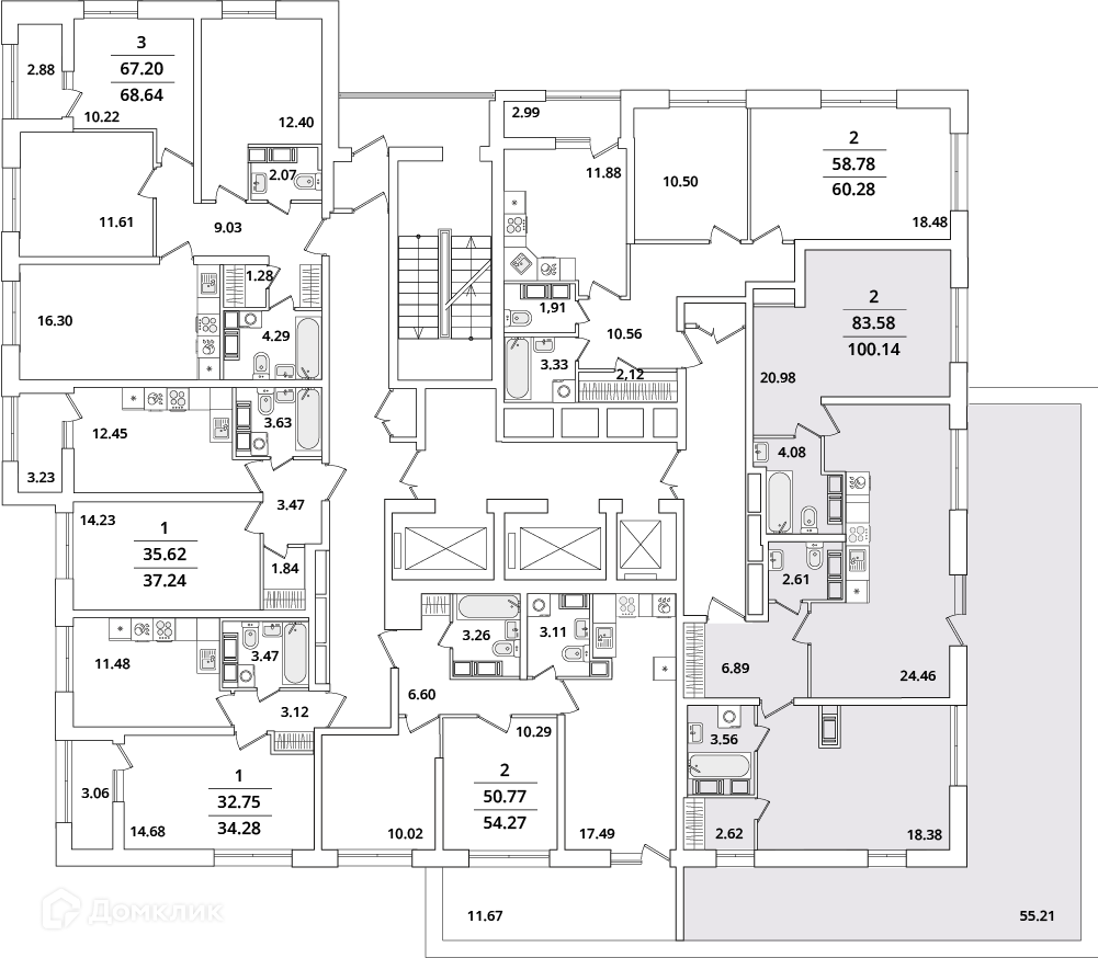 Площади квартир