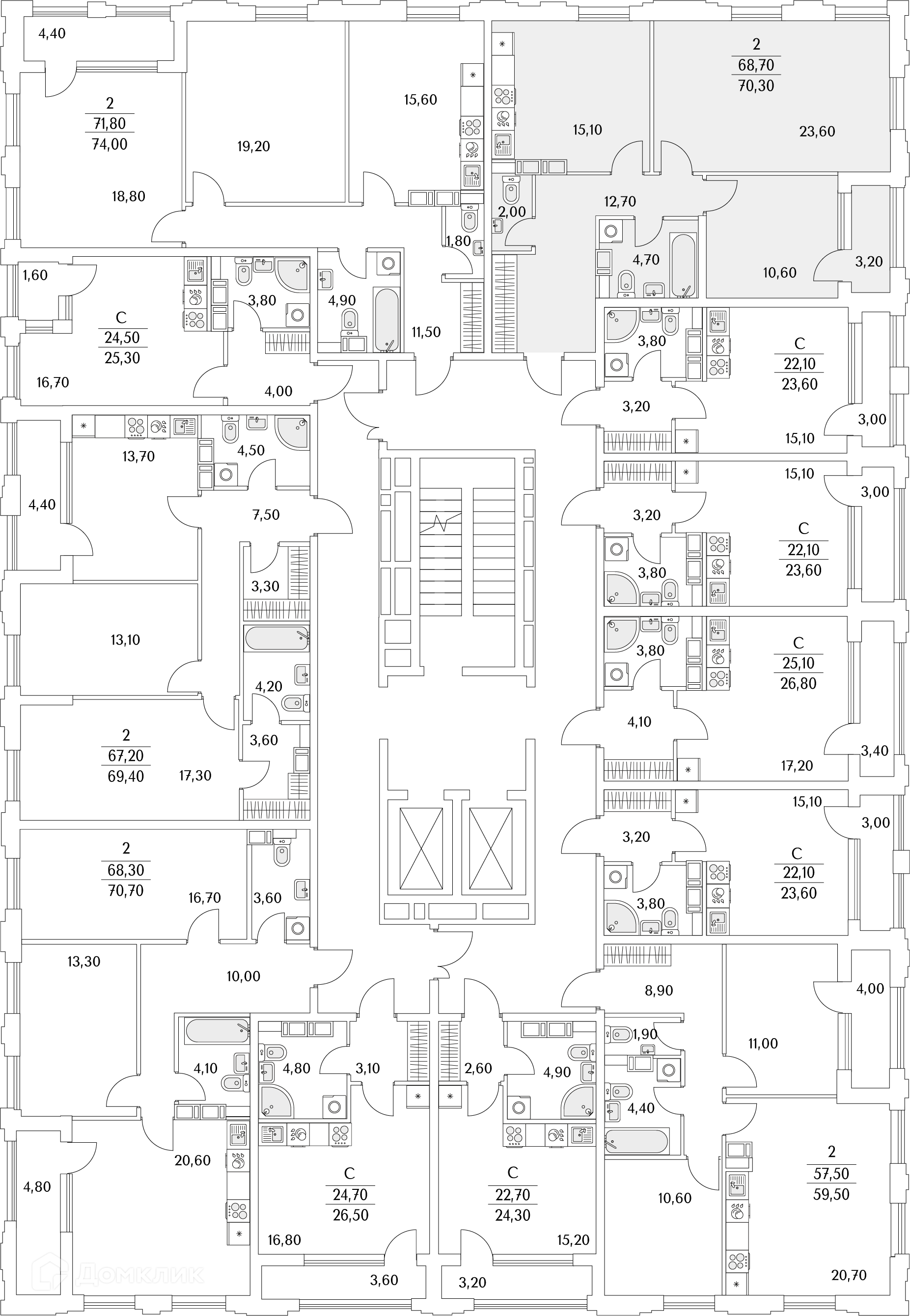 Площади квартир