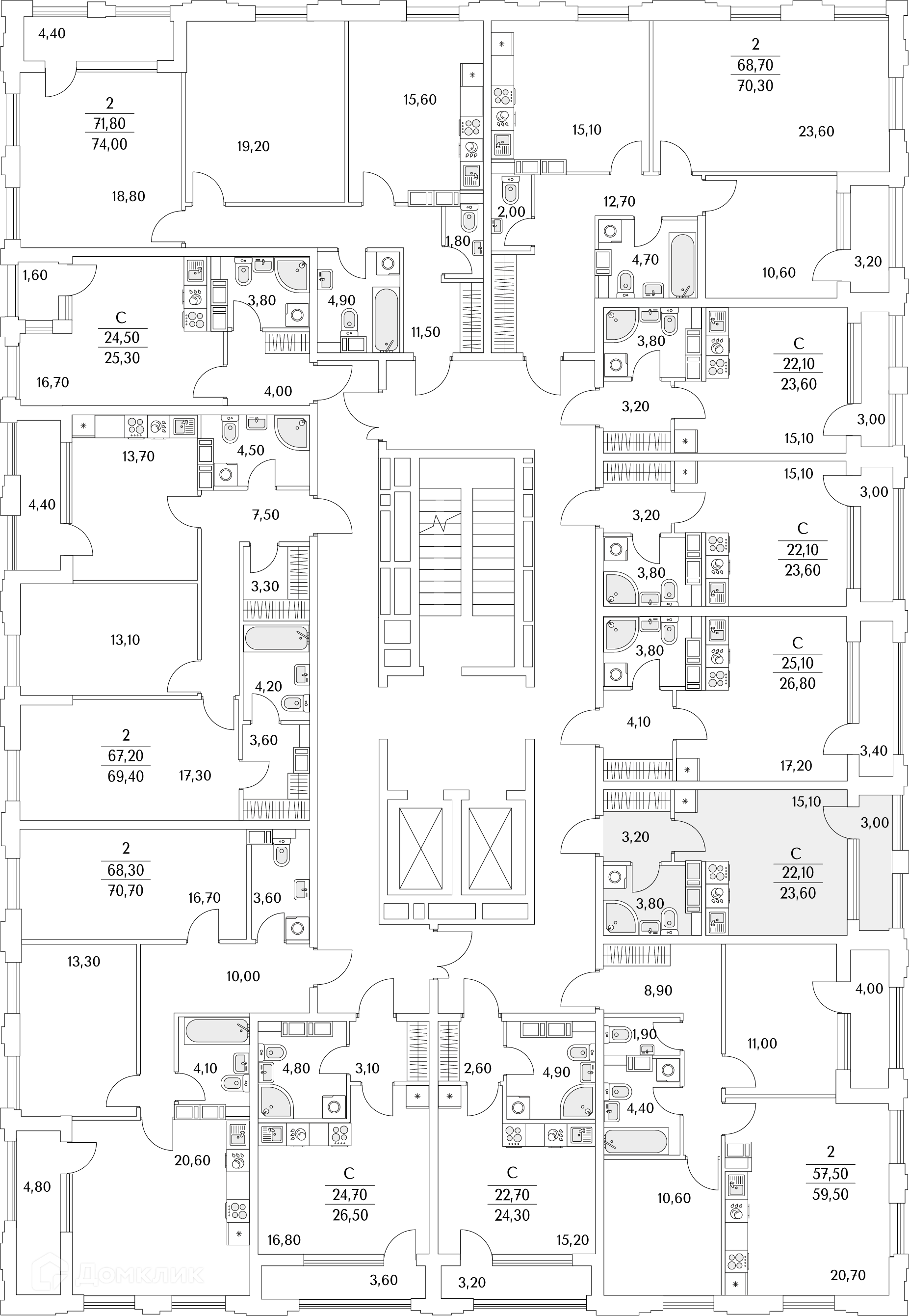 Площади квартир
