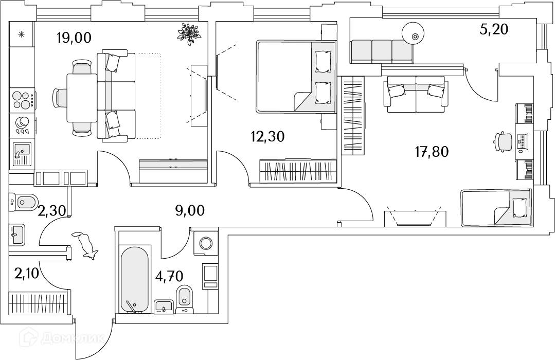 ✅ Кухня: 19 м² — идеальна для семейных ужинов.