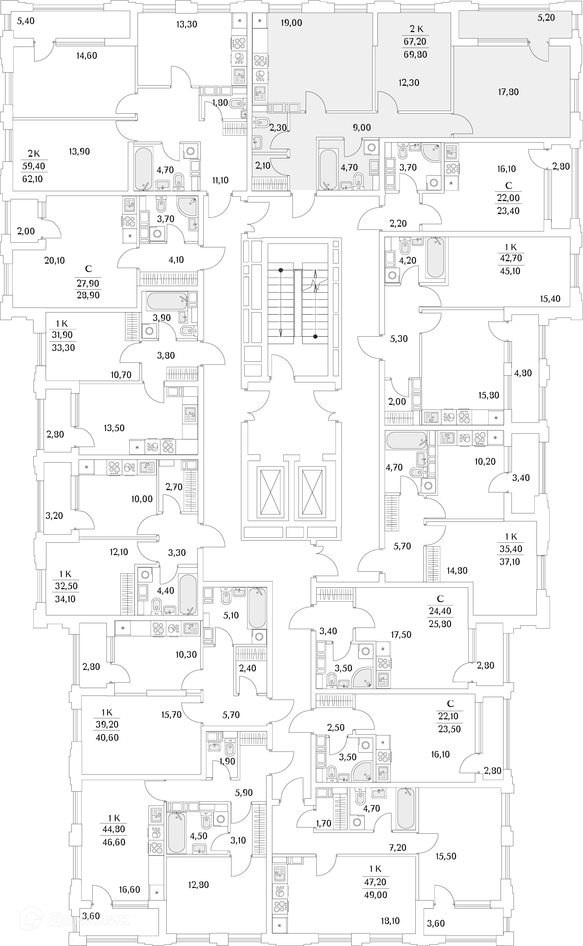Доступны квартиры разной планировки и площади. Жильцы смогут выбрать из трех вариантов отделки. Чистовую дизайнерскую стоит взять тем, кто хочет поскорее заселиться. Предчистовая (white box) подойдет желающим выбрать цвет стен и плитки — самые грязные и шумные работы выполнит застройщик. А квартира без отделки — хороший вариант для тех, кто хочет сделать масштабный ремонт самостоятельно.