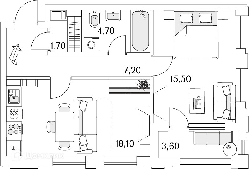 ✅ Кухня: 18.1 м² — эргономичное пространство.
