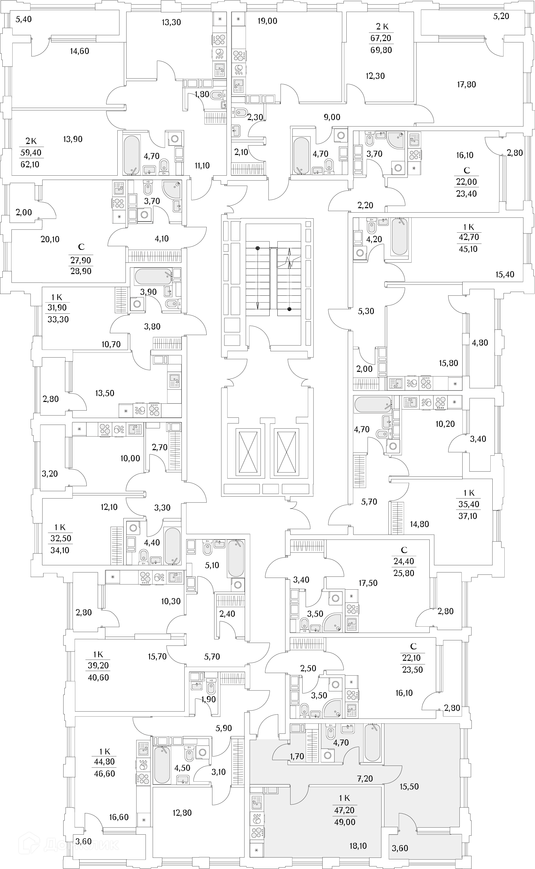 Доступны квартиры разной планировки и площади. Жильцы смогут выбрать из трех вариантов отделки. Чистовую дизайнерскую стоит взять тем, кто хочет поскорее заселиться. Предчистовая (white box) подойдет желающим выбрать цвет стен и плитки — самые грязные и шумные работы выполнит застройщик. А квартира без отделки — хороший вариант для тех, кто хочет сделать масштабный ремонт самостоятельно.