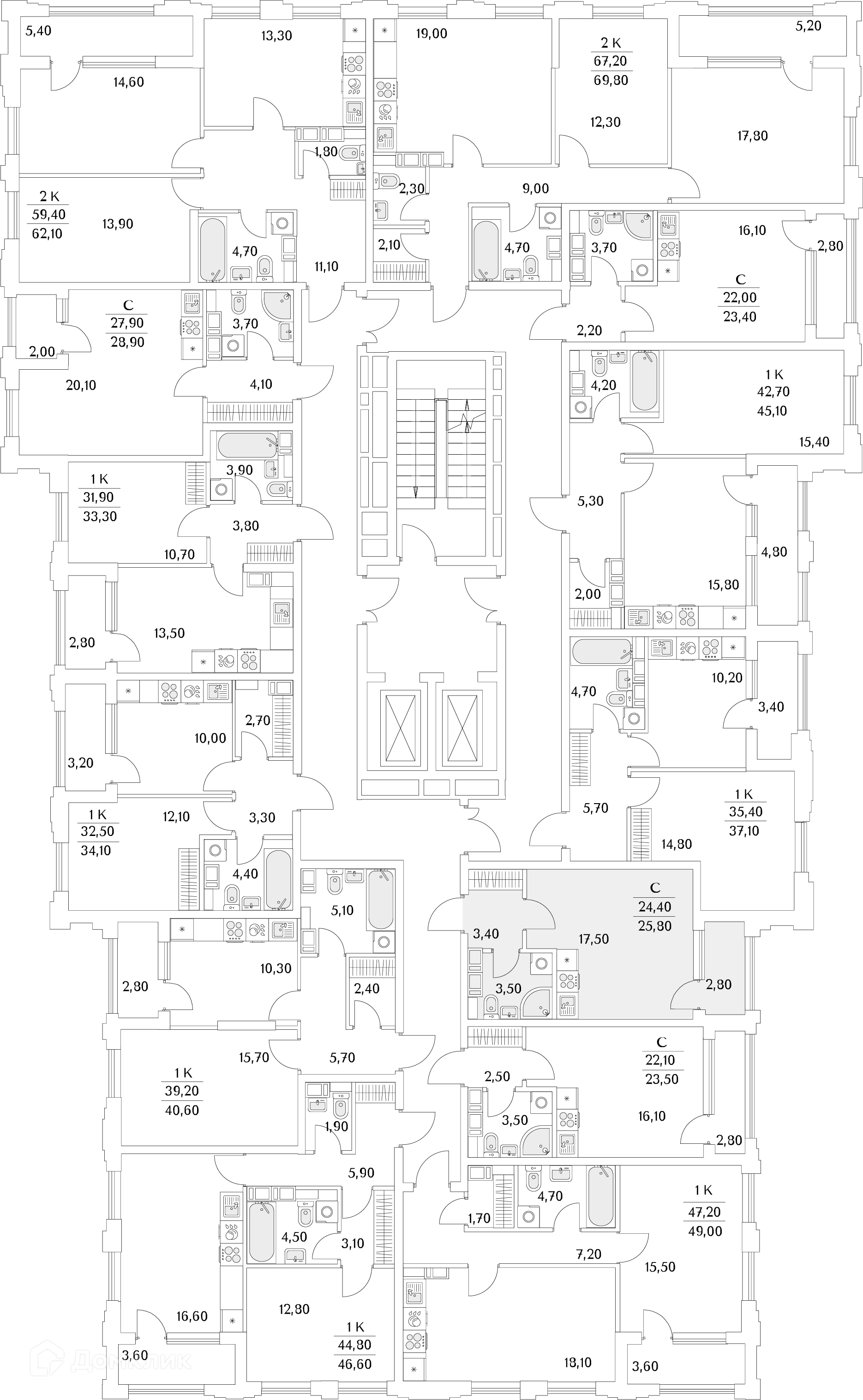 Площади квартир