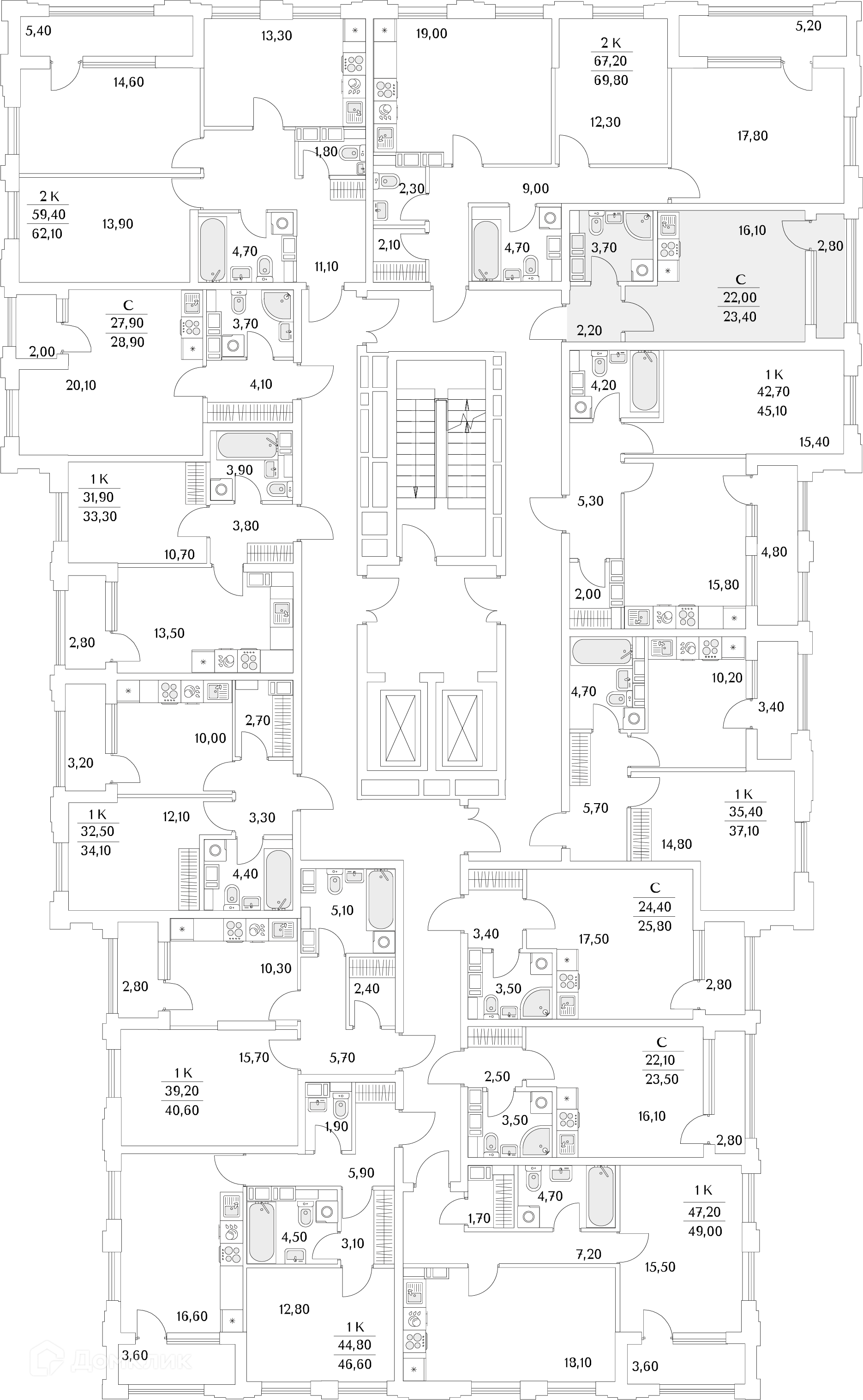 Площади квартир
