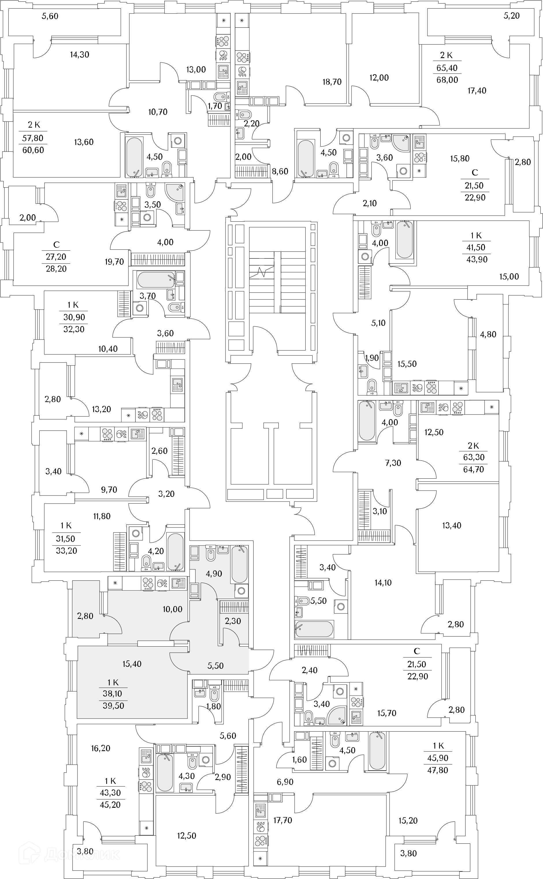 Площади квартир