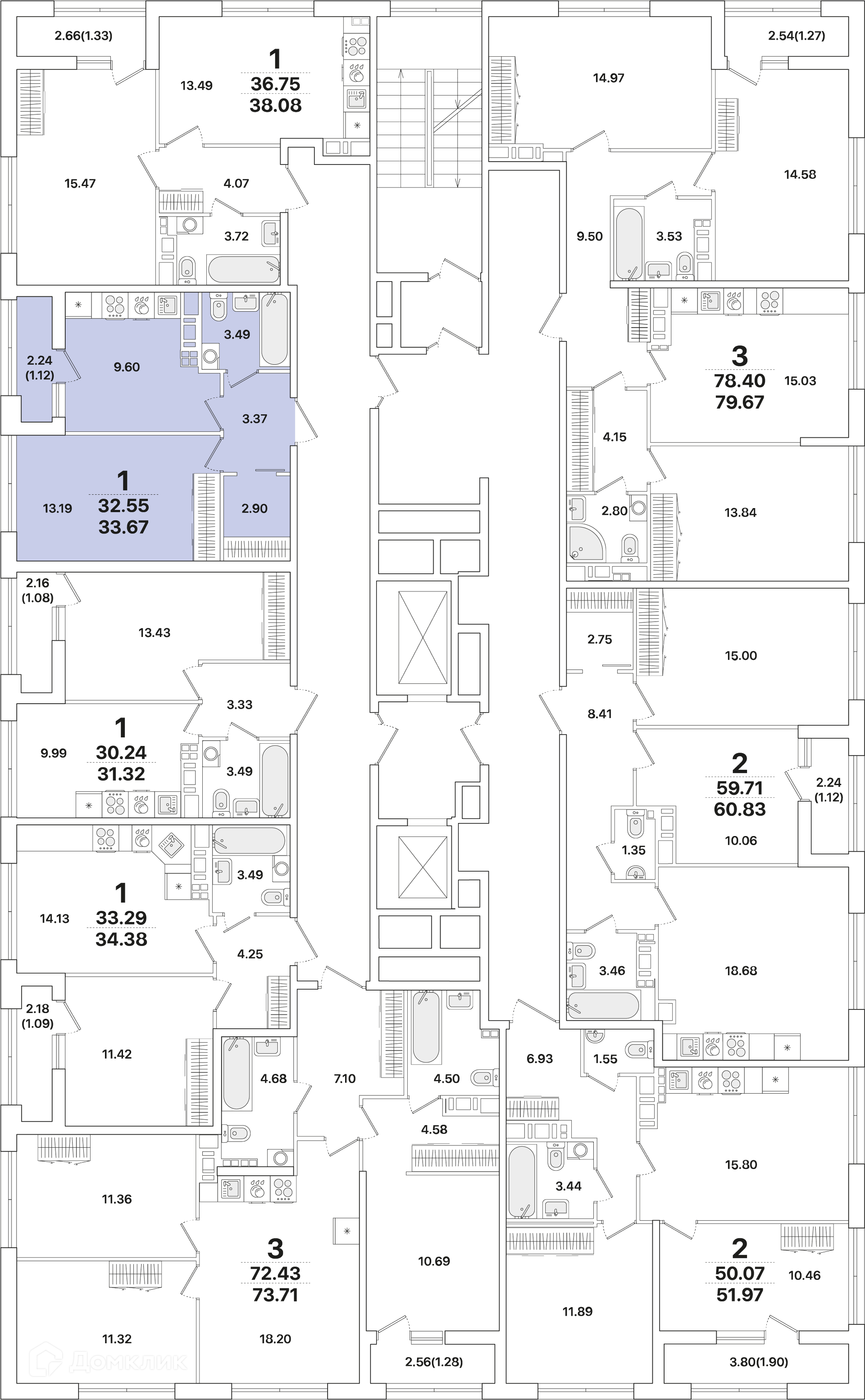 Площади квартир