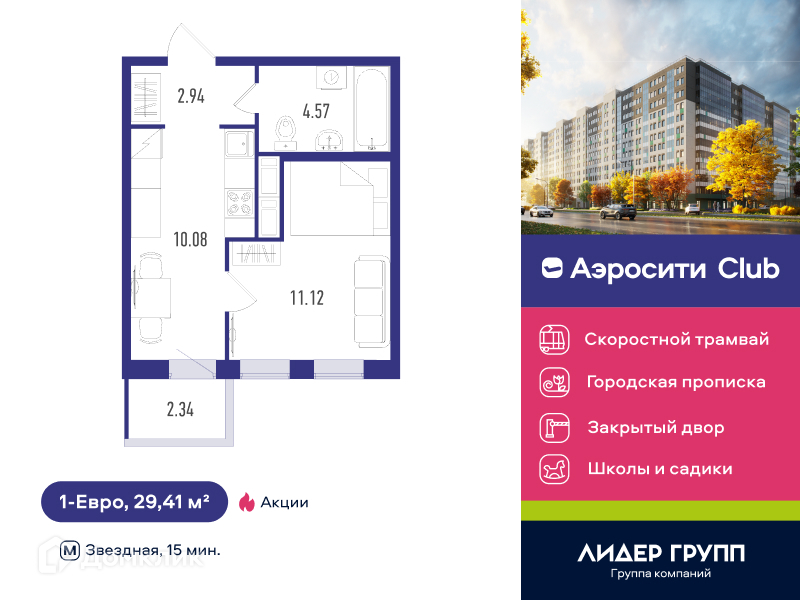ЖК AEROCITY CLUB выгодно отличает высокое качество строительных и инженерных материалов, а традиционное для ГК «Лидер Групп» разнообразие рациональных планировочных решений, включающее евро планировки с просторной кухней-гостиной, позволит выбрать квартиру вашей мечты. Квартира комфорт-класса по доступной цене – теперь это возможно! Это третий по счету жилой комплекс, который наша компания возводит в рамках квартальной застройки южных границ Санкт-Петербурга. Первый дом введен в эксплуатацию, идет заселение. Вторую очередь построили и сдали раньше срока. Проект задает новый стандарт качества и организации пространства доступного жилья. Рядом с ЖК AEROCITY CLUB введен в эксплуатацию и готовится к открытию современный трехэтажный детский сад, идет строительство комбинированного детского сада и начальной школы, общеобразовательной школы на 1650 мест, предусмотрено строительство детской и взрослой поликлиник. Есть планы по созданию своей парковой зоны и строительству линии скоростного трамвая. ЖК AEROCITY CLUB это: - городская прописка, - благоприятная экология, - светлые квартиры с увеличенными окнами, - подземный паркинг, - высота потолков до 2,73 м, - рациональные планировочные решения, включая современные европланировки.