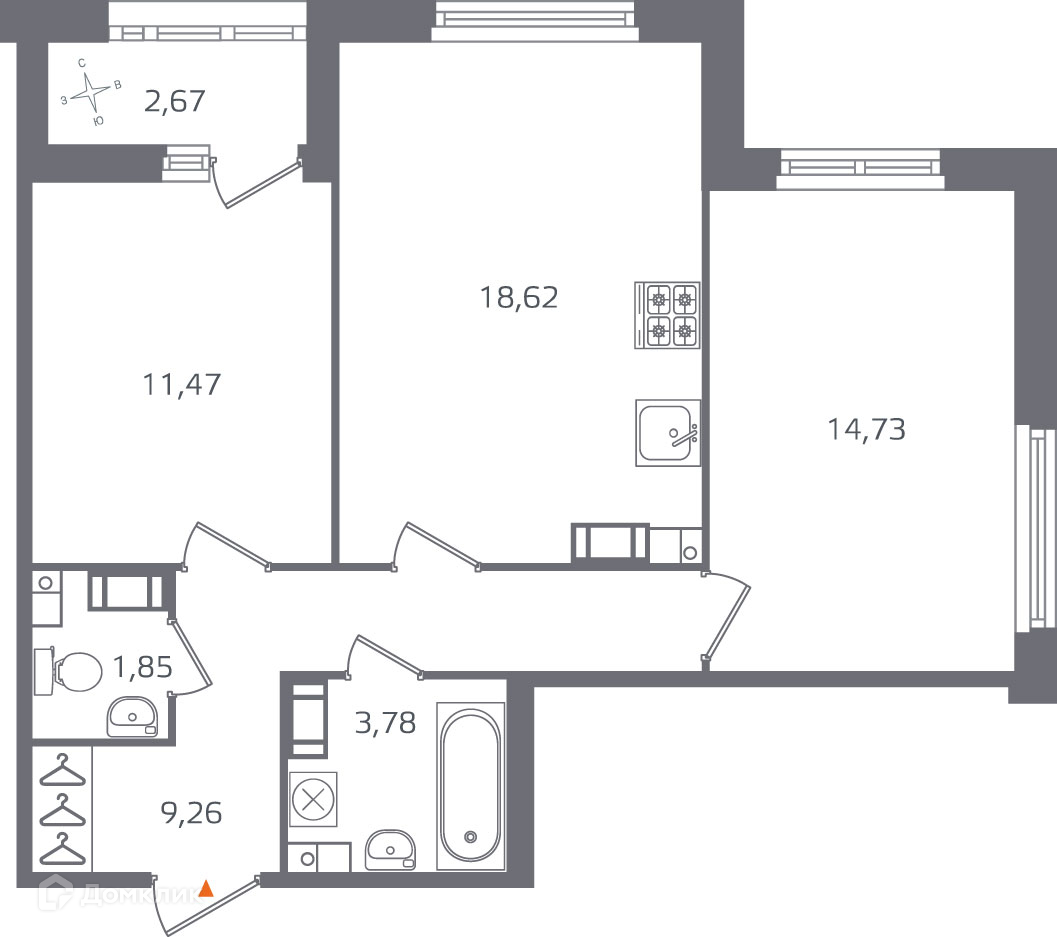 ✅ Кухня: 18.62 м² — эргономичное пространство.