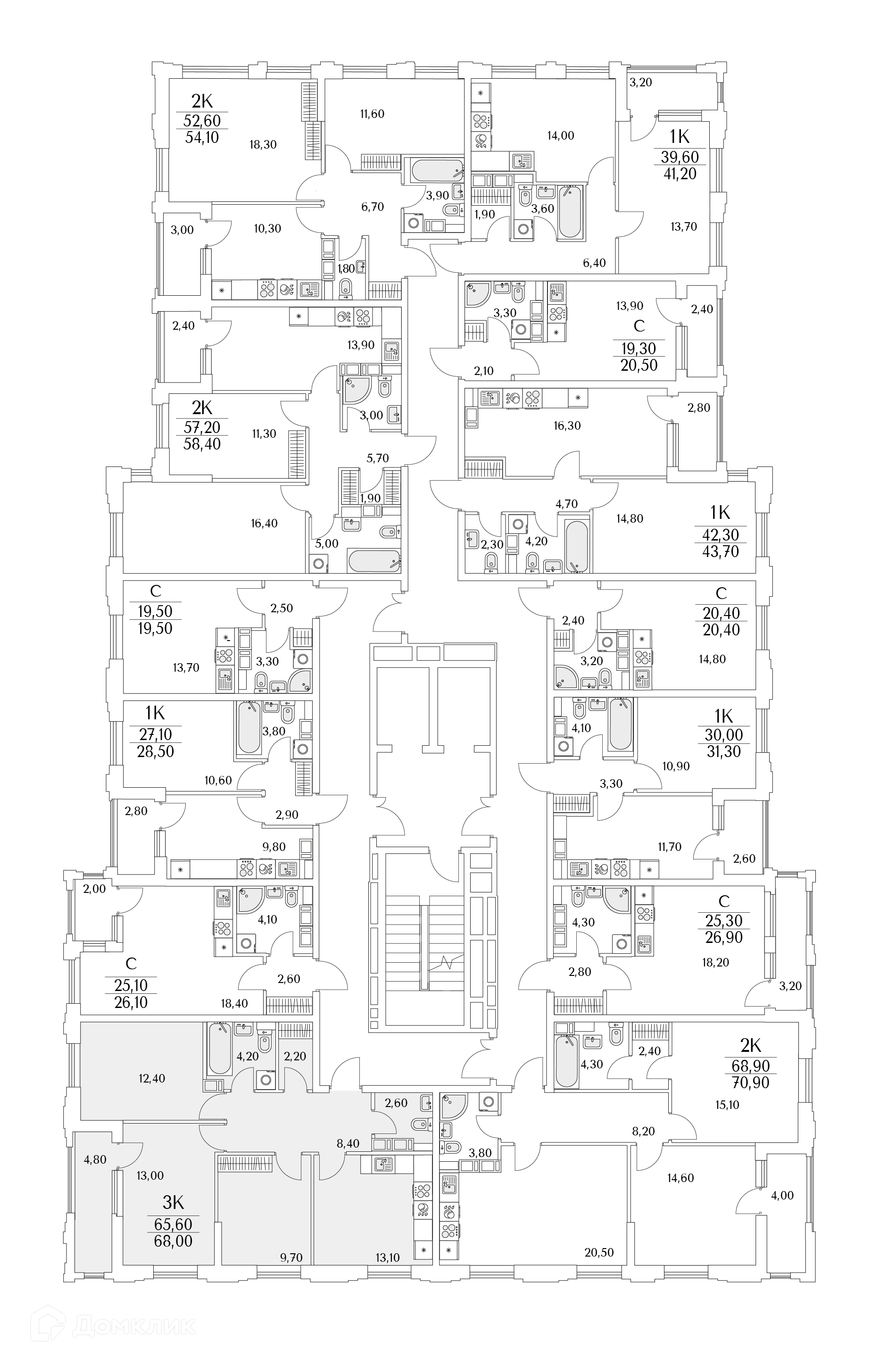 Площади квартир