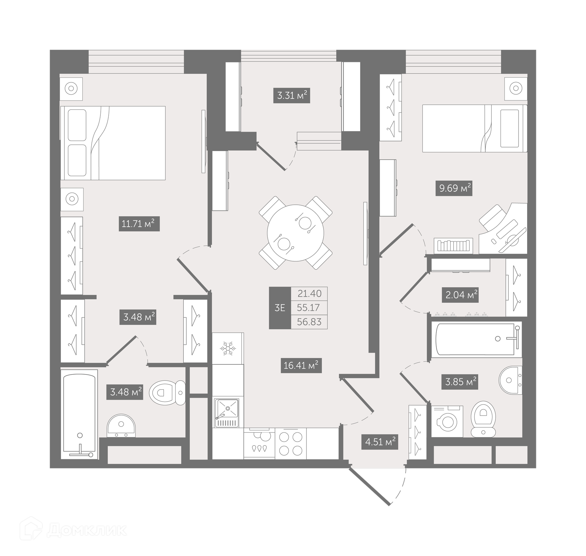 Планировка 2 комн. в ЖК UP-квартал Воронцовский