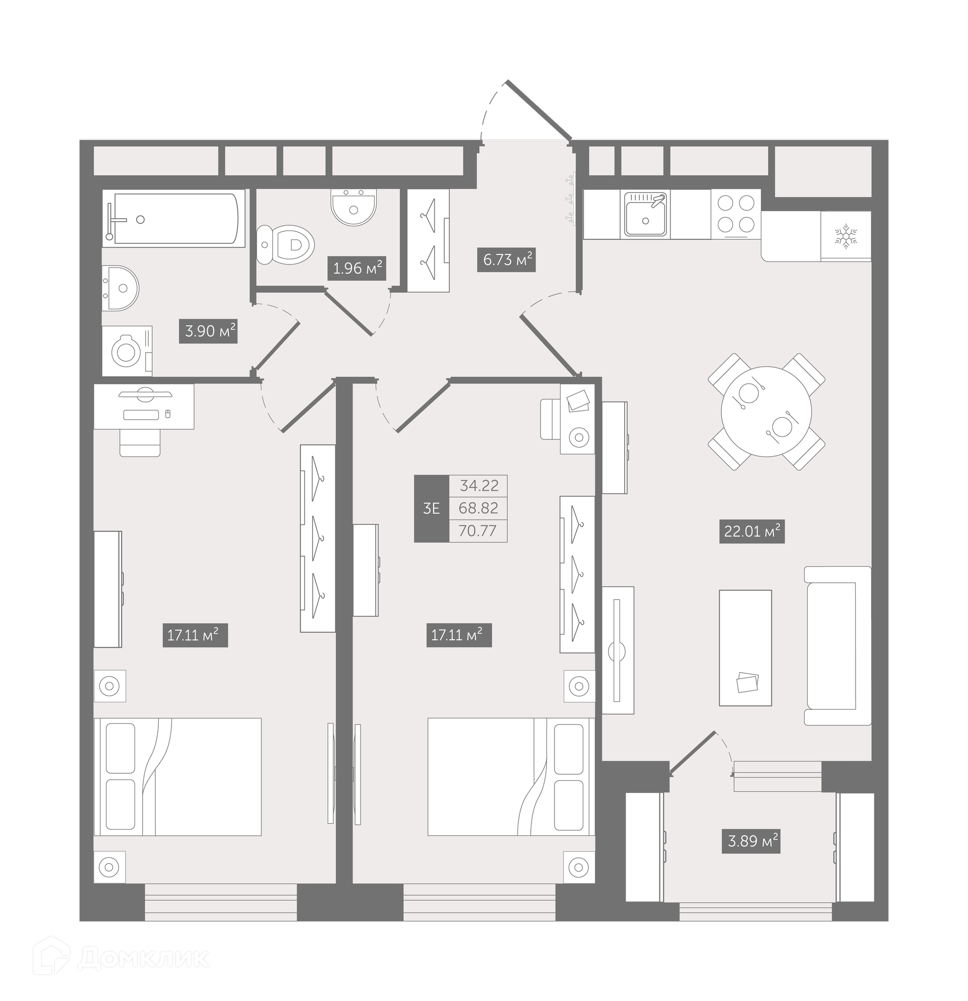 22.75 - 83.39 м²