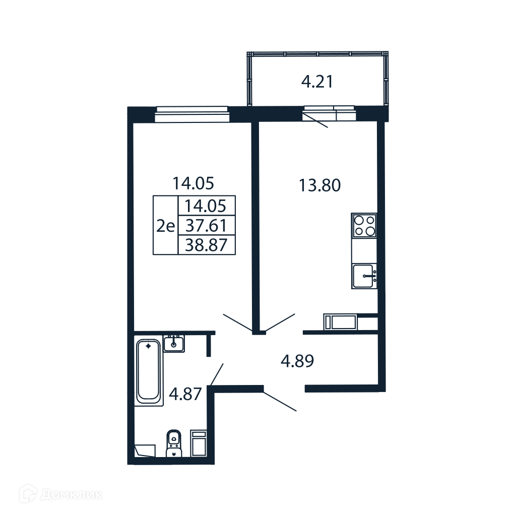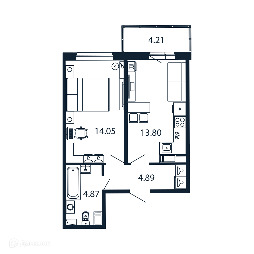 Планировка 1 комн. в ЖК "Полис ЛАВрики"