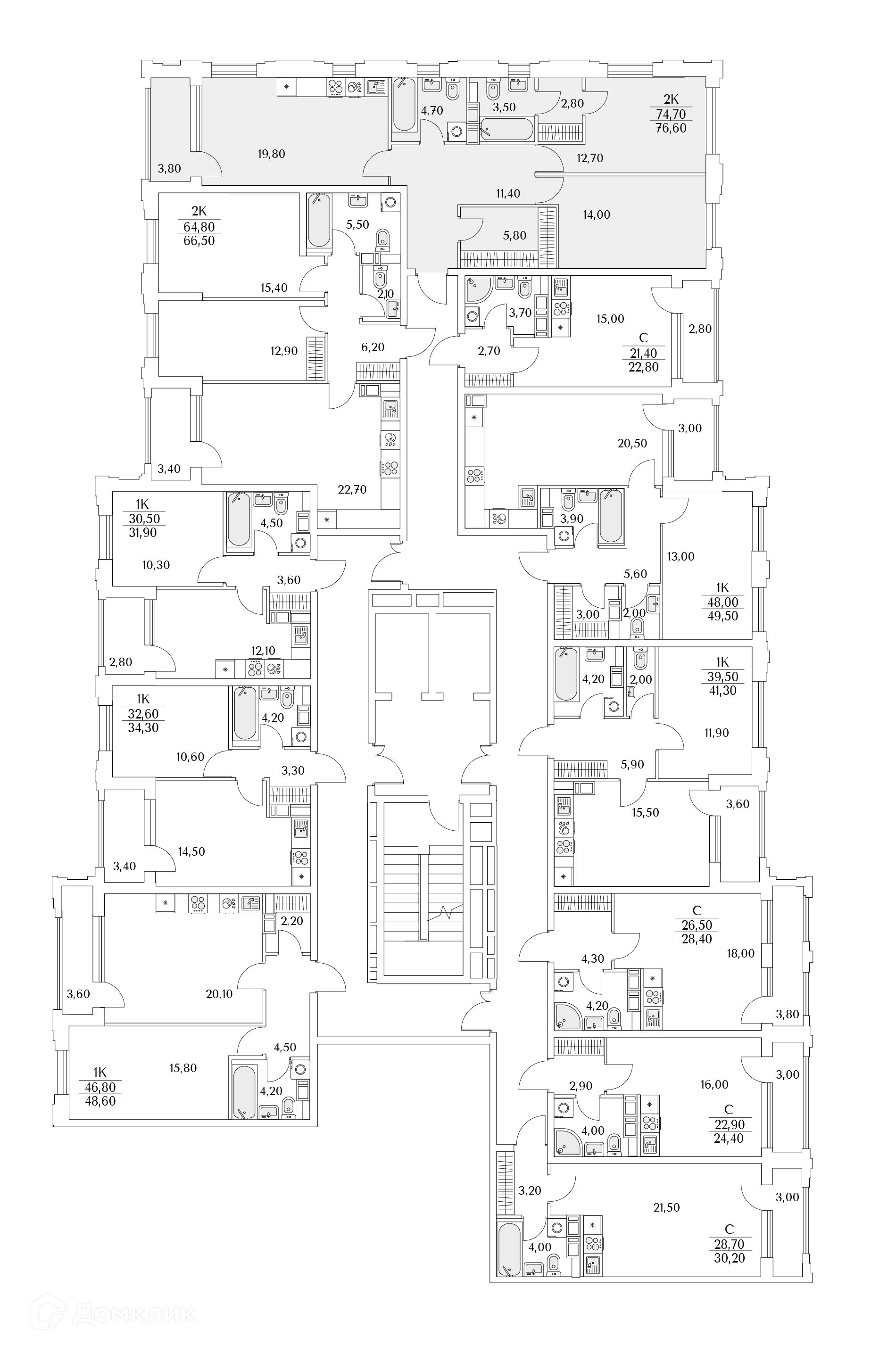 Площади квартир