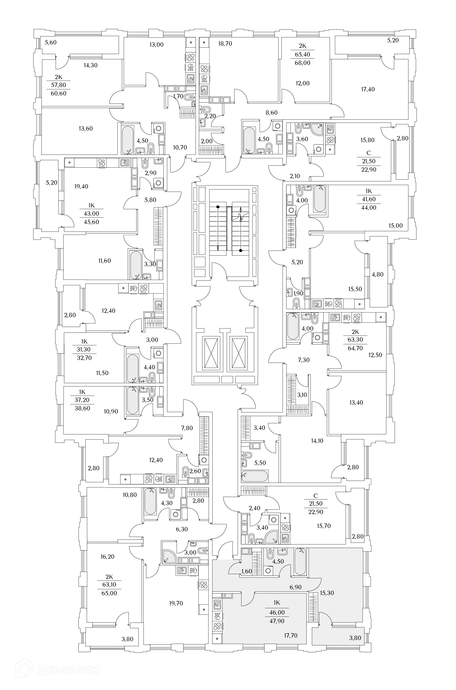 Площади квартир