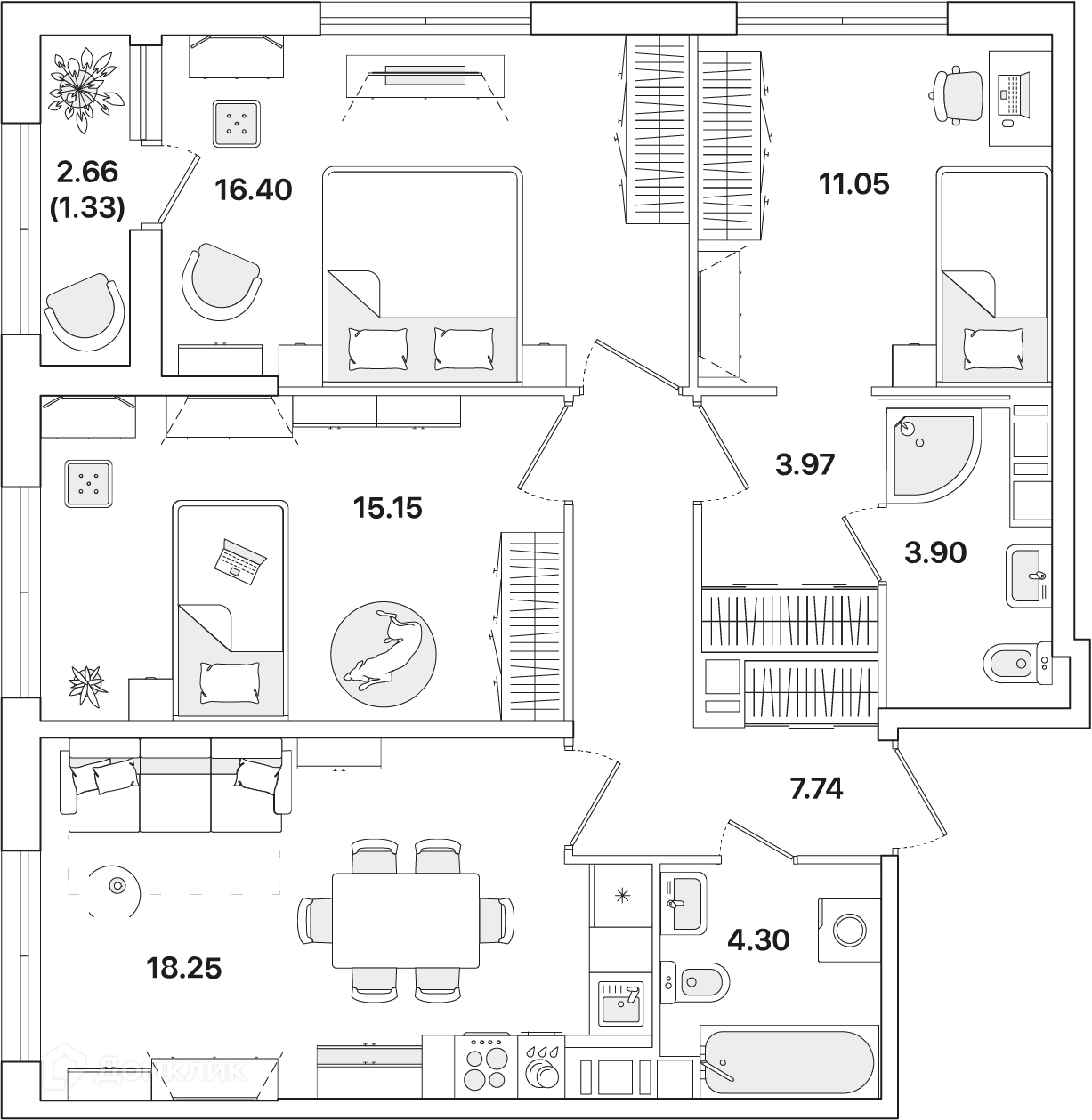 Площади квартир