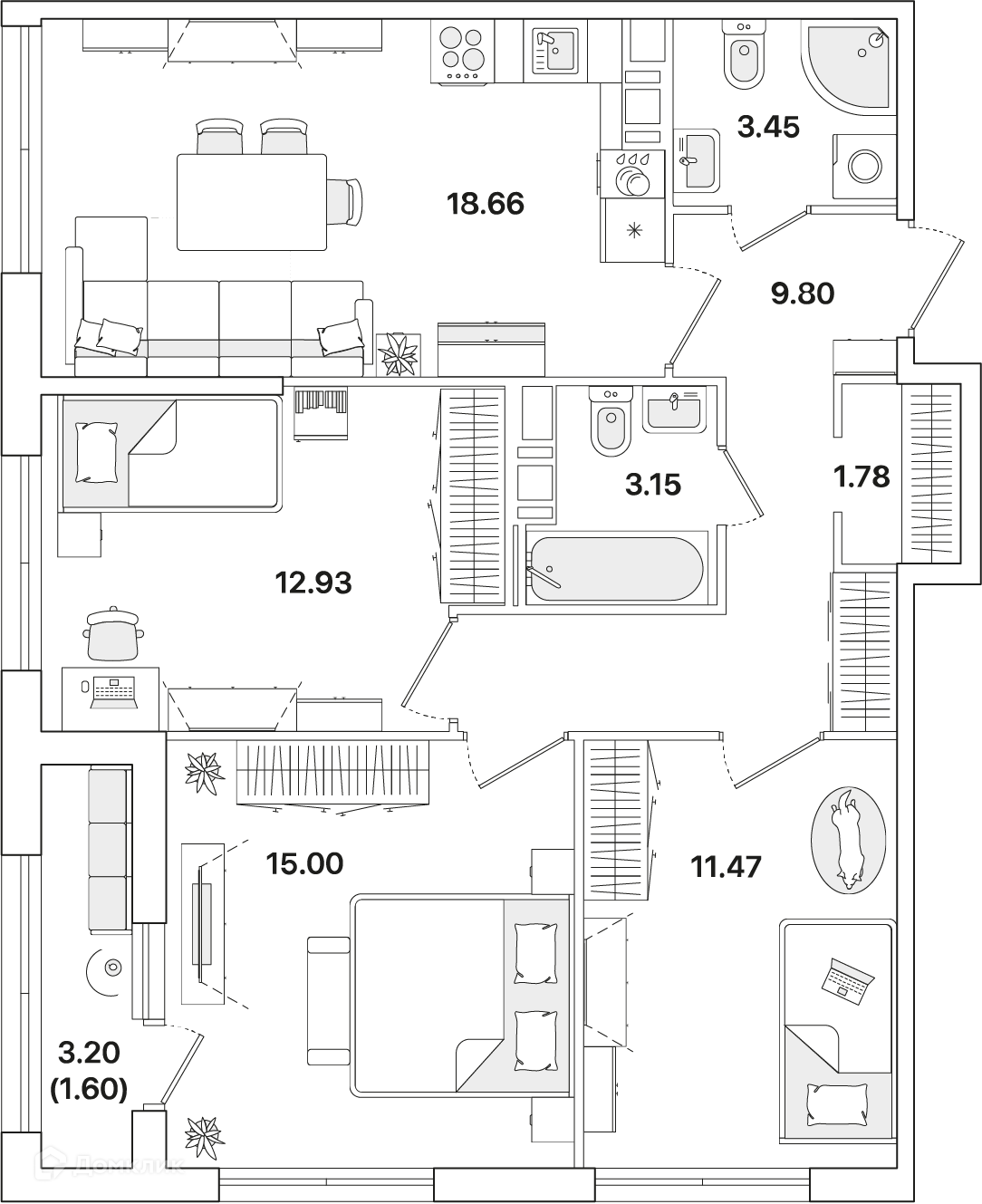 Площади квартир