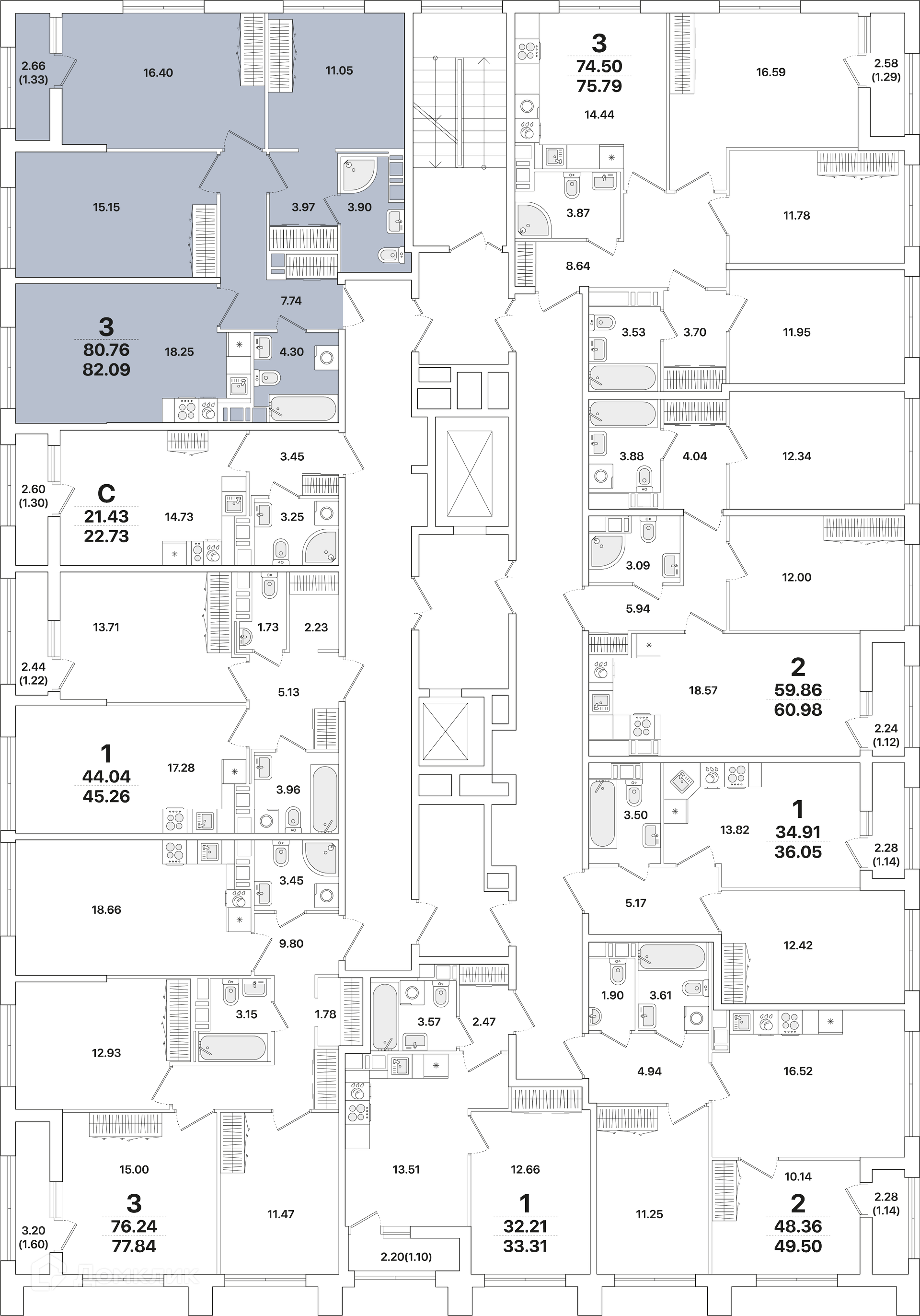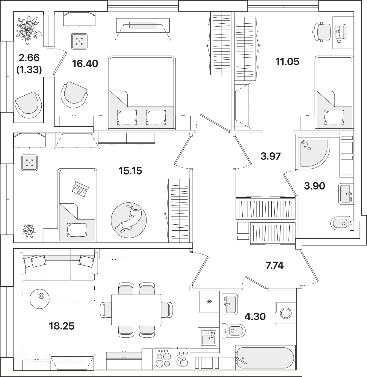 Площади квартир