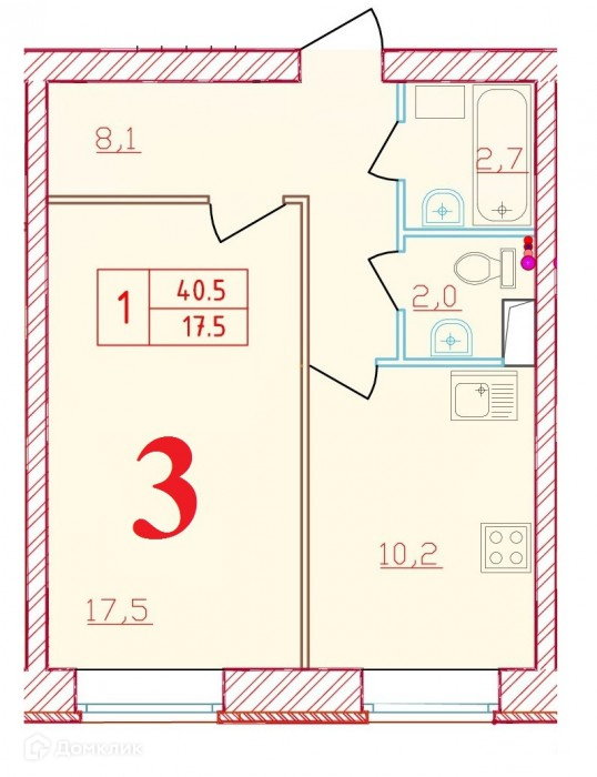 Планировка 1 комн. в ЖК Новый мир