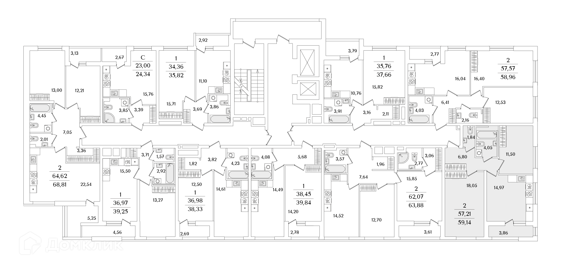 Площади квартир