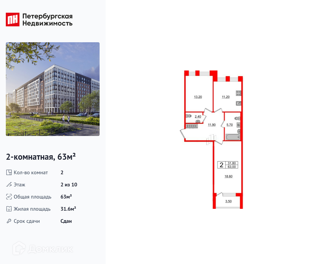 В продаже 2-комнатная квартира в современном жилом комплексе "ЖК "Svetlana Park (Светлана Парк)"" 🏢. Квартира расположена на 2-м этаже 11-этажного дома. Отличный вариант для комфортной жизни.