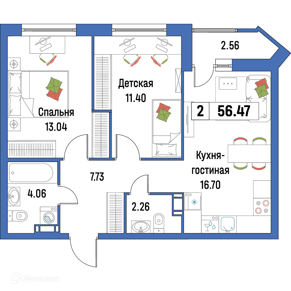 Планировка 1 комн. в ЖК "Урбанист-2"