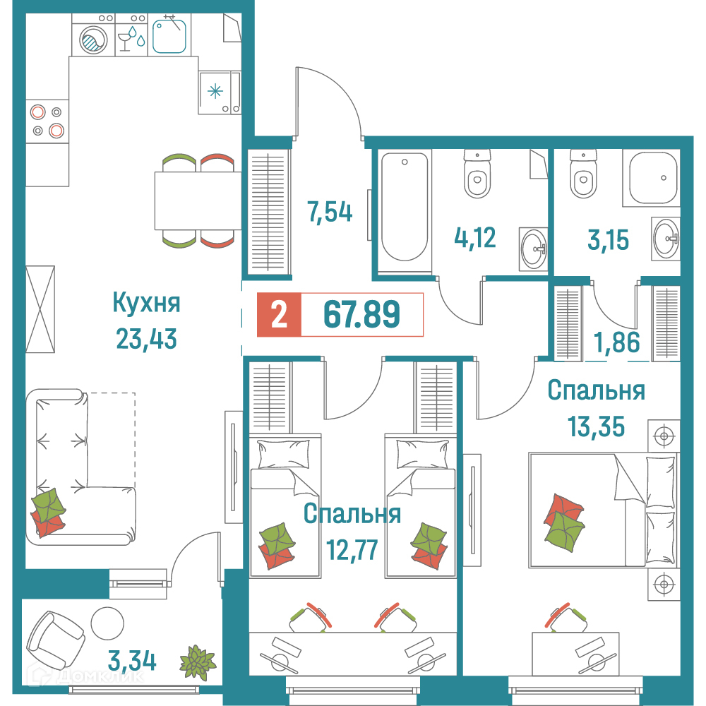Предлагается 2-комнатная квартира в современном жилом комплексе "ЖК "Графика"" 🏢. Квартира расположена на 1-м этаже 19-этажного дома. Отличный вариант для инвестиций.
