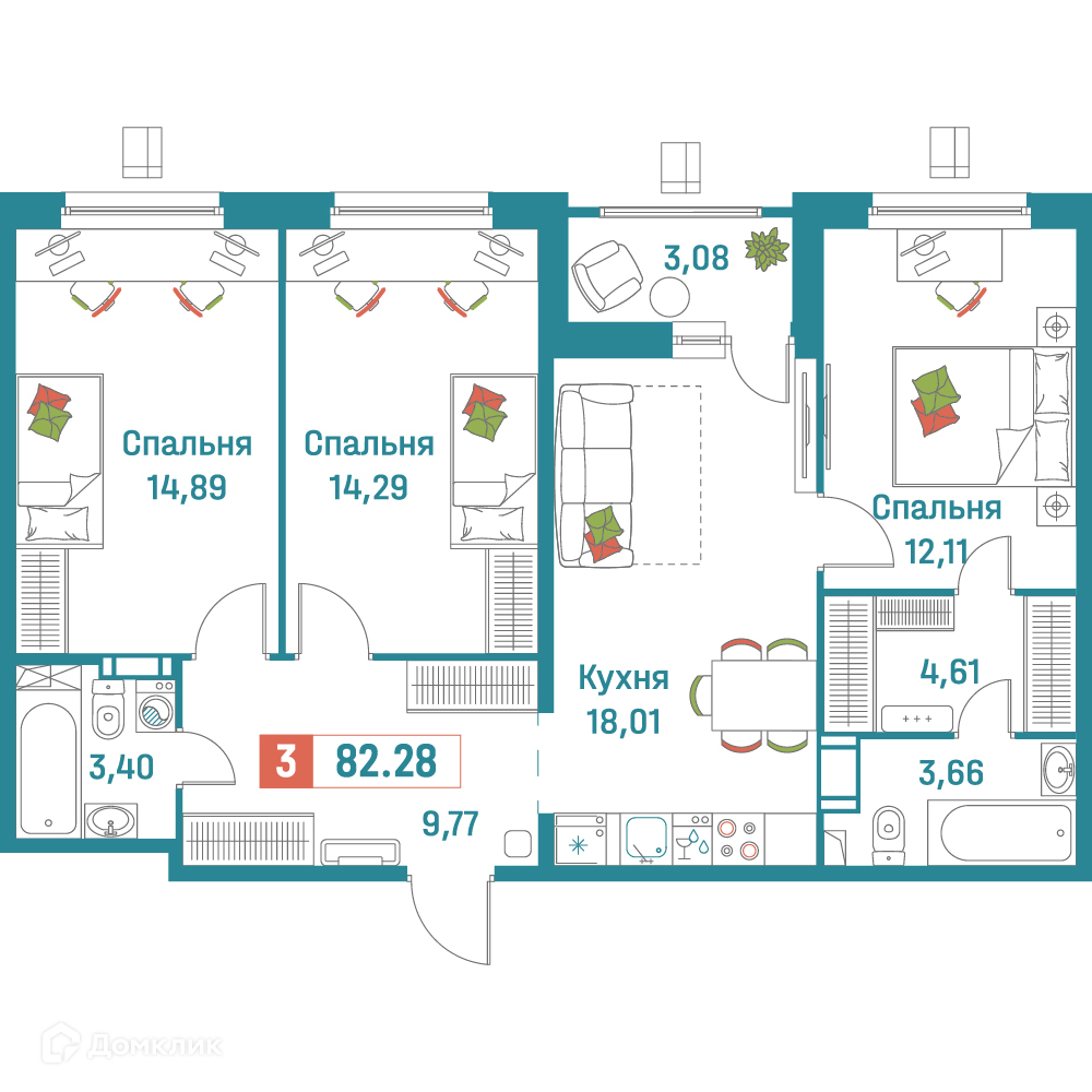 3-комнатная