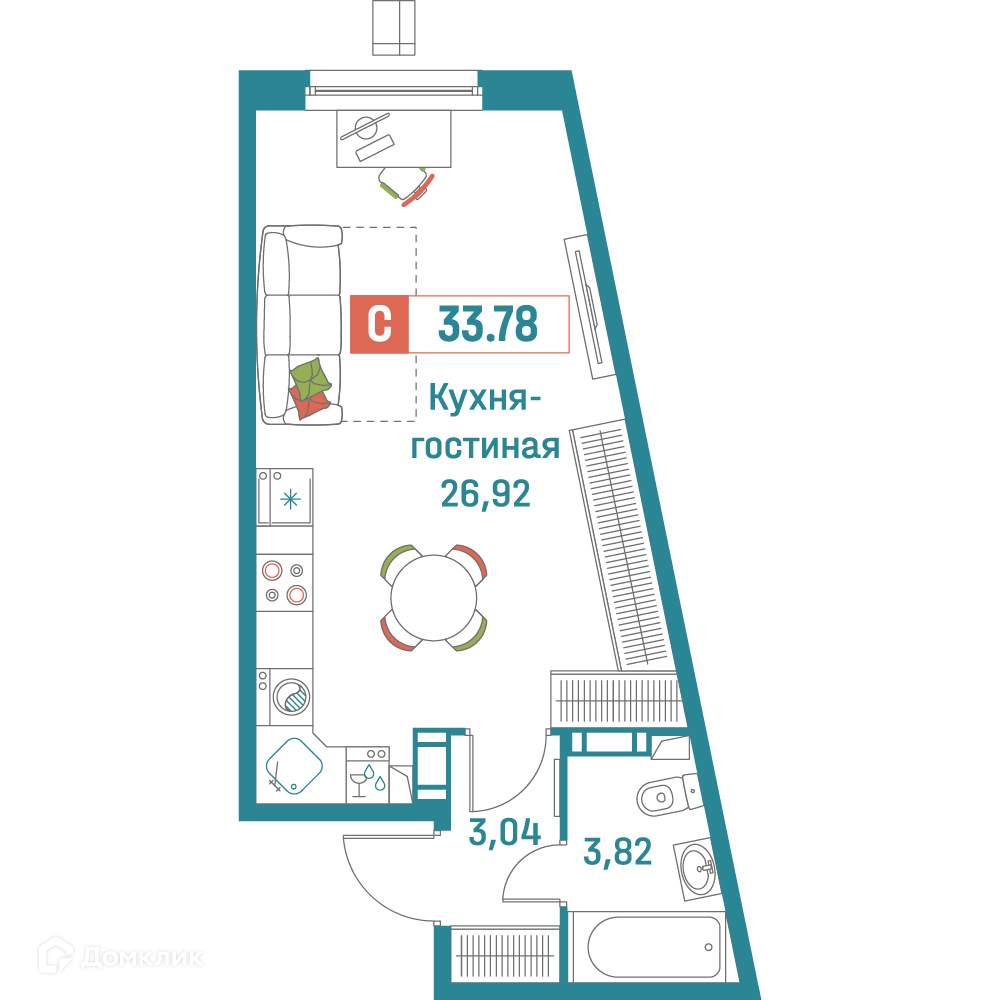 Планировка Студия в ЖК "Графика"