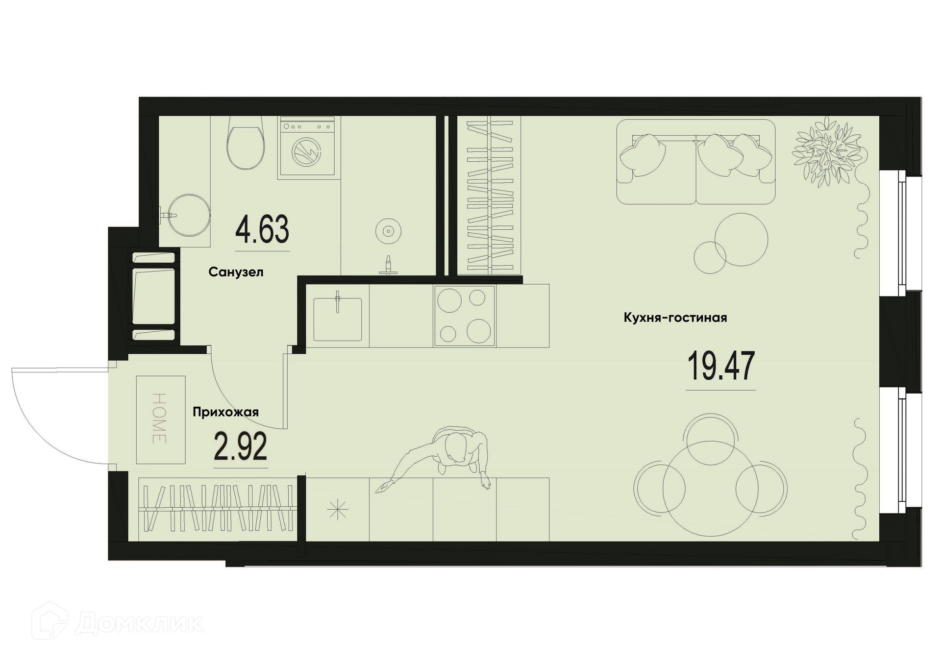 Планировка Студия в ЖК ID Murino III (Ай ди Мурино III)