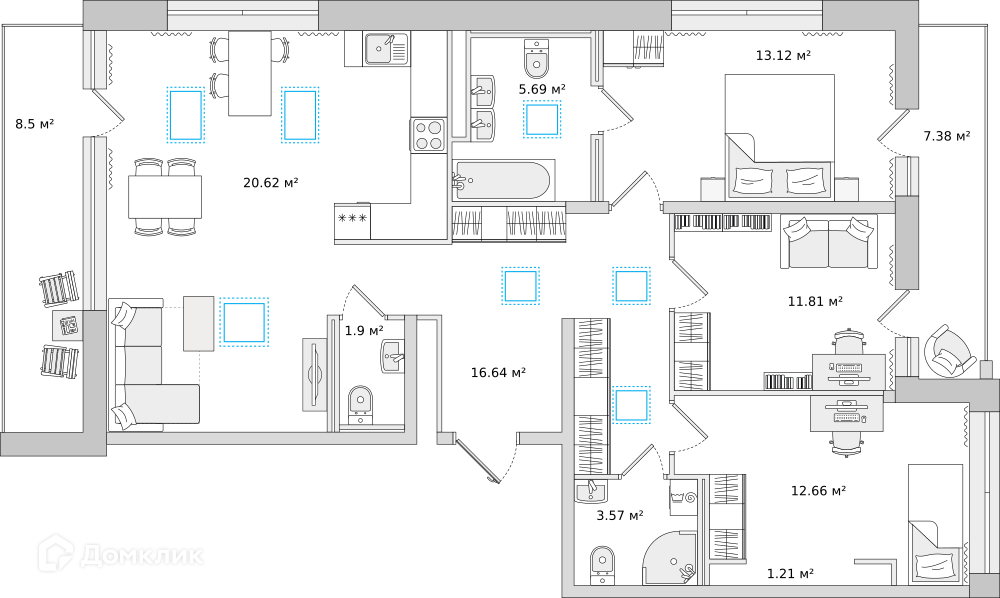 Площади квартир