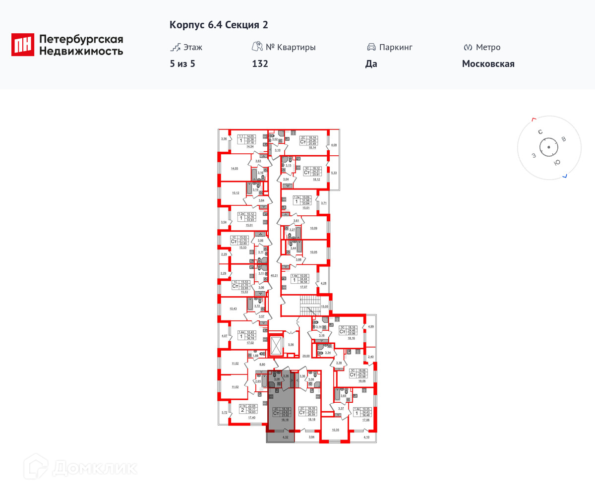 Квартира расположена на 5-м этаже 6-этажного дома.