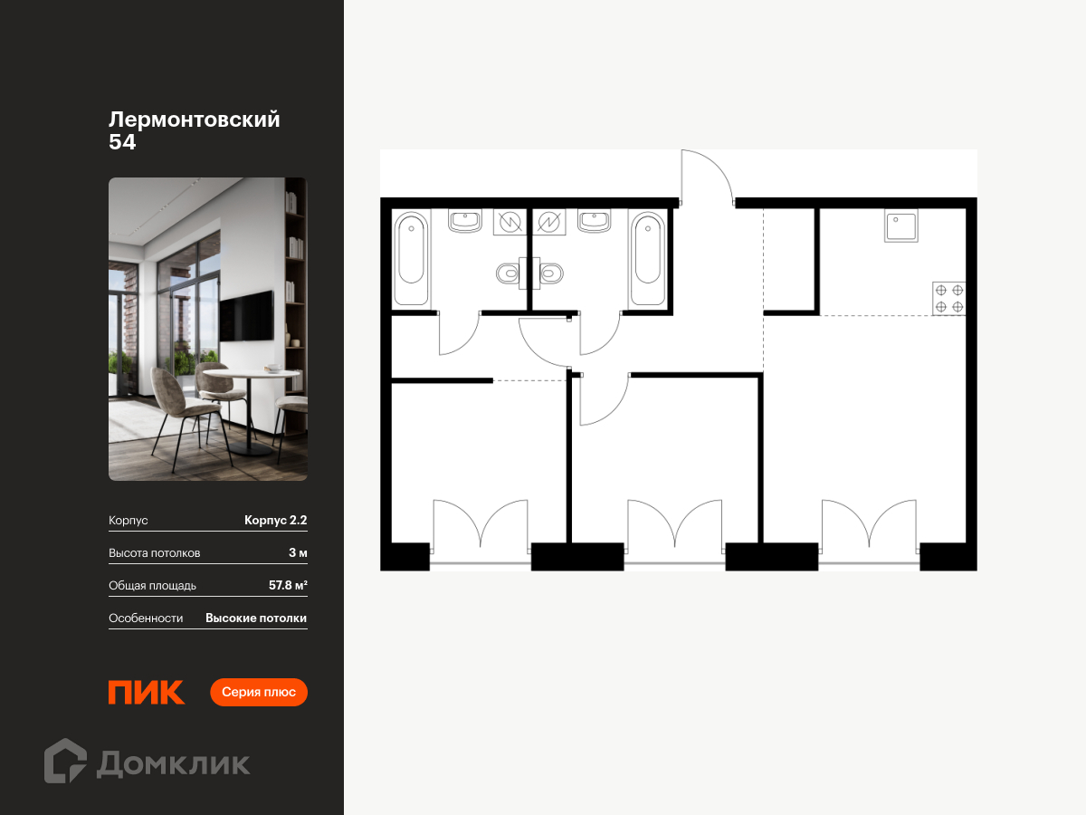 • Площадь - 57.8 м²