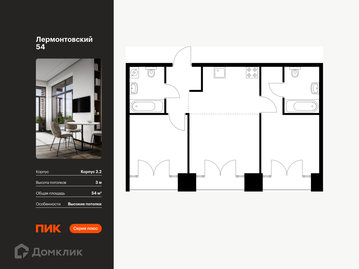 Доступна к покупке 2-комнатная квартира в востребованном жилом комплексе "ЖК Лермонтовский 54" 🏢