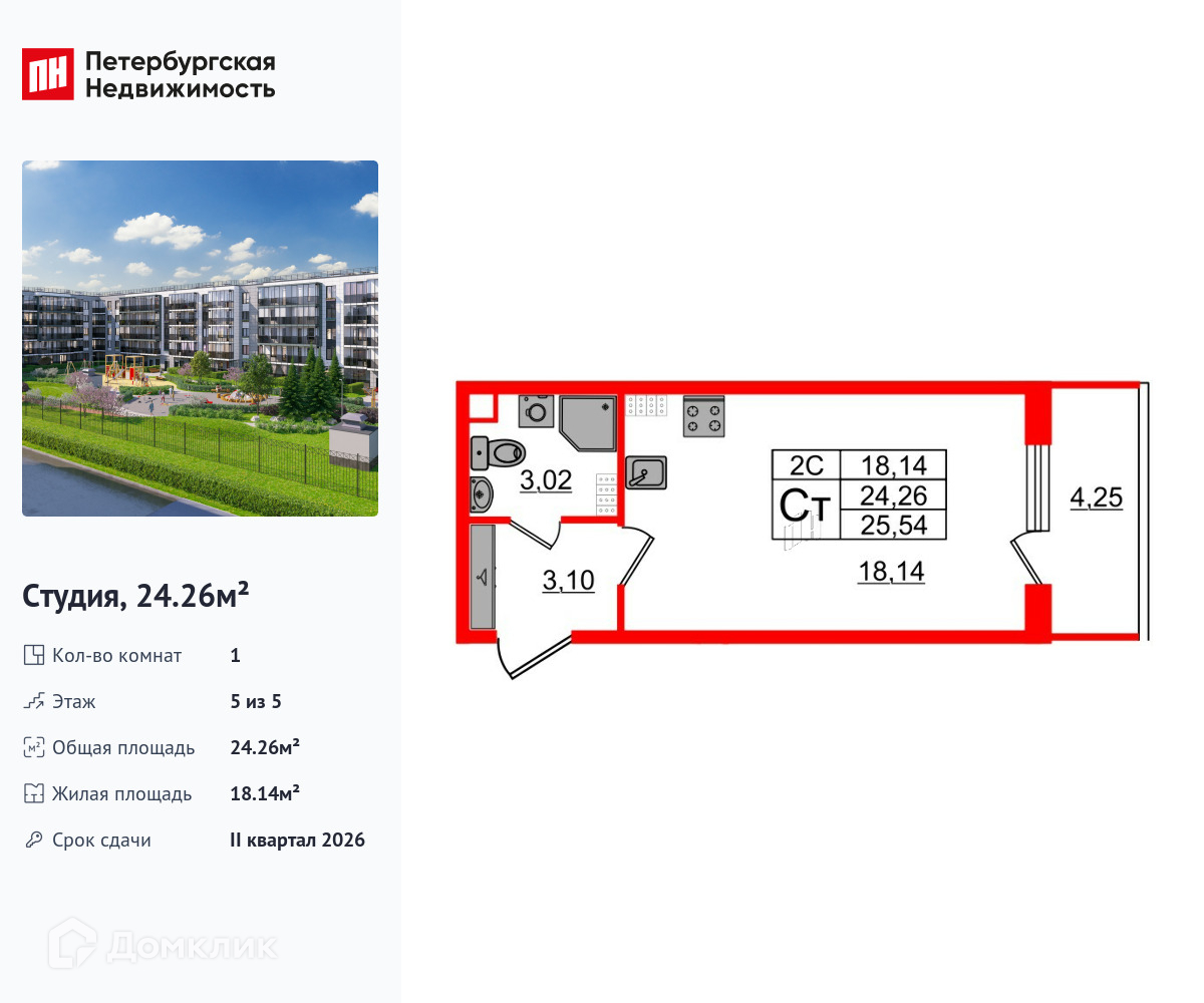 Продается Студия в востребованном жилом комплексе "ЖК Парадный ансамбль" 🏢