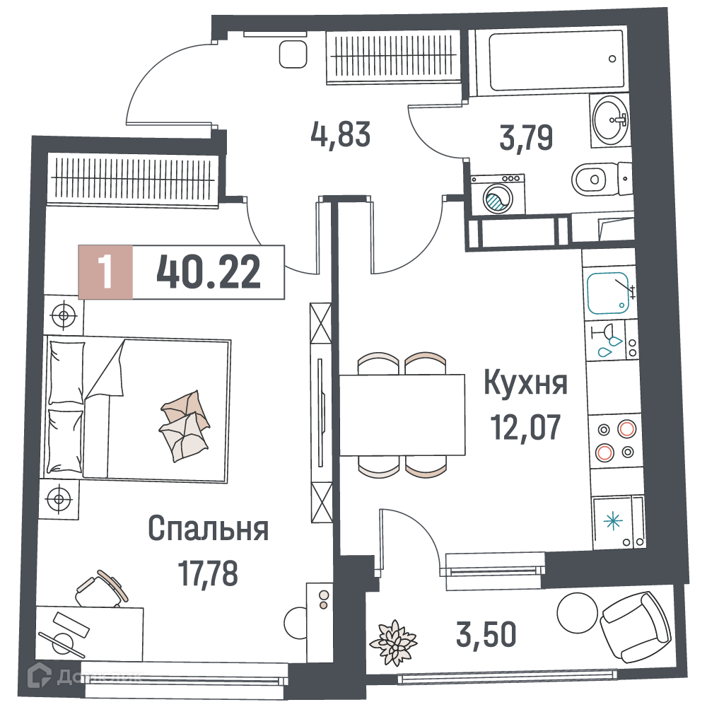 - ✅ Просторная жилая площадь: 17.78 м².