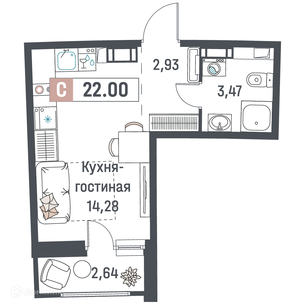 Планировка 1 комн. в ЖК "Авиатор"