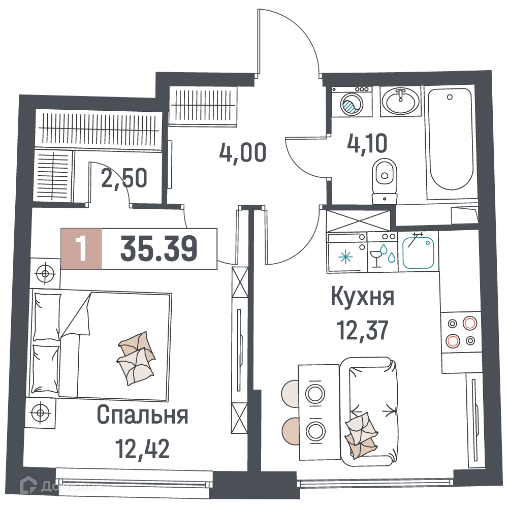 - Количество комнат: 1-комнатная квартира