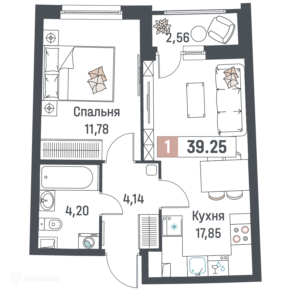 - Количество комнат: 1-комнатная квартира