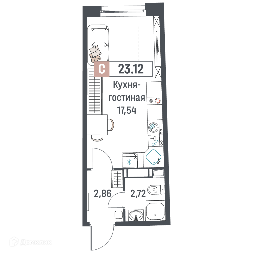 - Жилая площадь: 17.54 м²