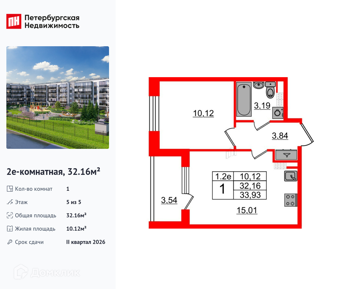 Доступна к покупке 1-комнатная квартира в современном жилом комплексе "ЖК Парадный ансамбль" 🏢