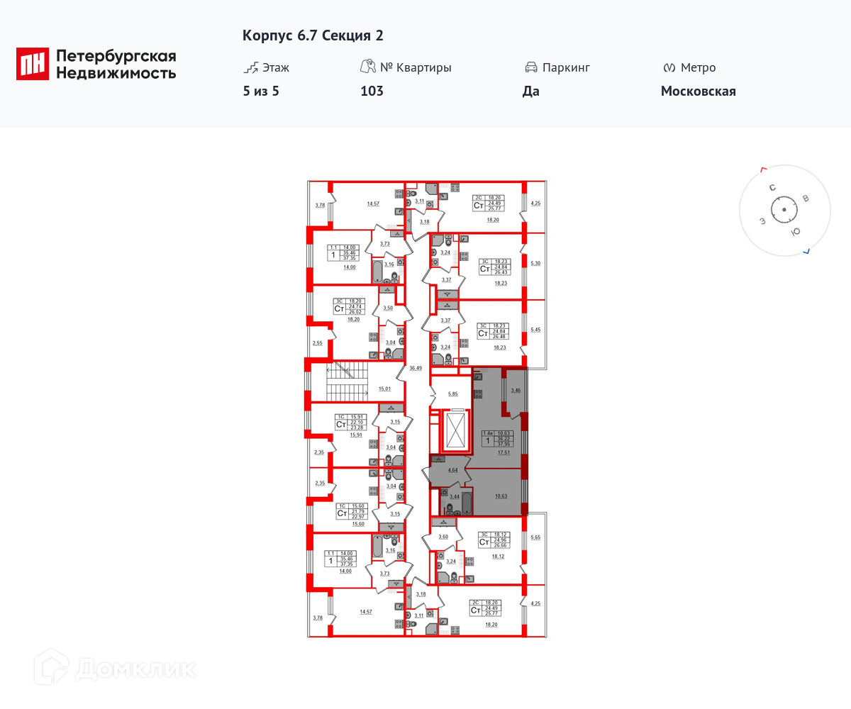 Квартира расположена на 5-м этаже 6-этажного дома.