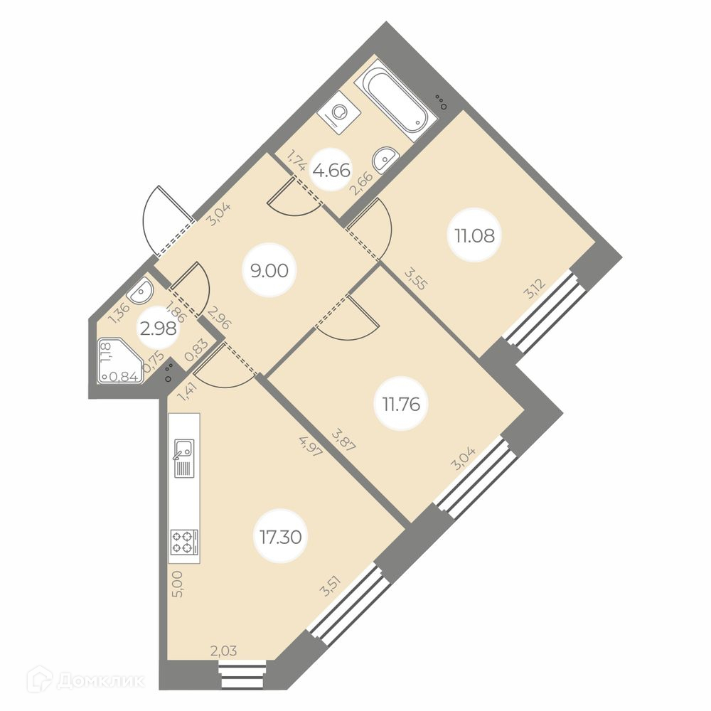 • Площадь - 56.78 м²