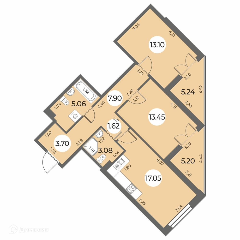 ✅ Кухня: 17.05 м² — идеальна для семейных ужинов.