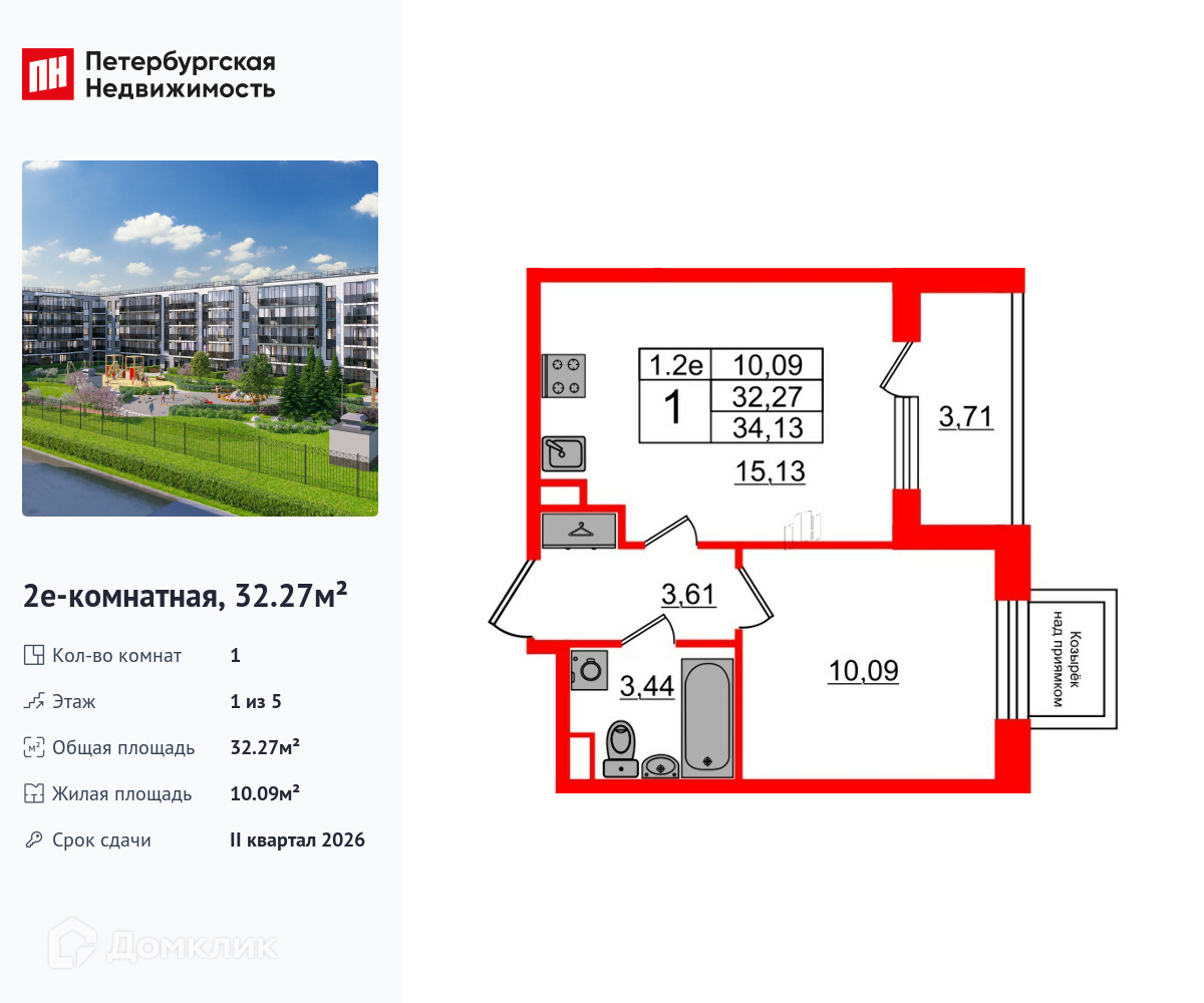 • Площадь - 32.27 м²