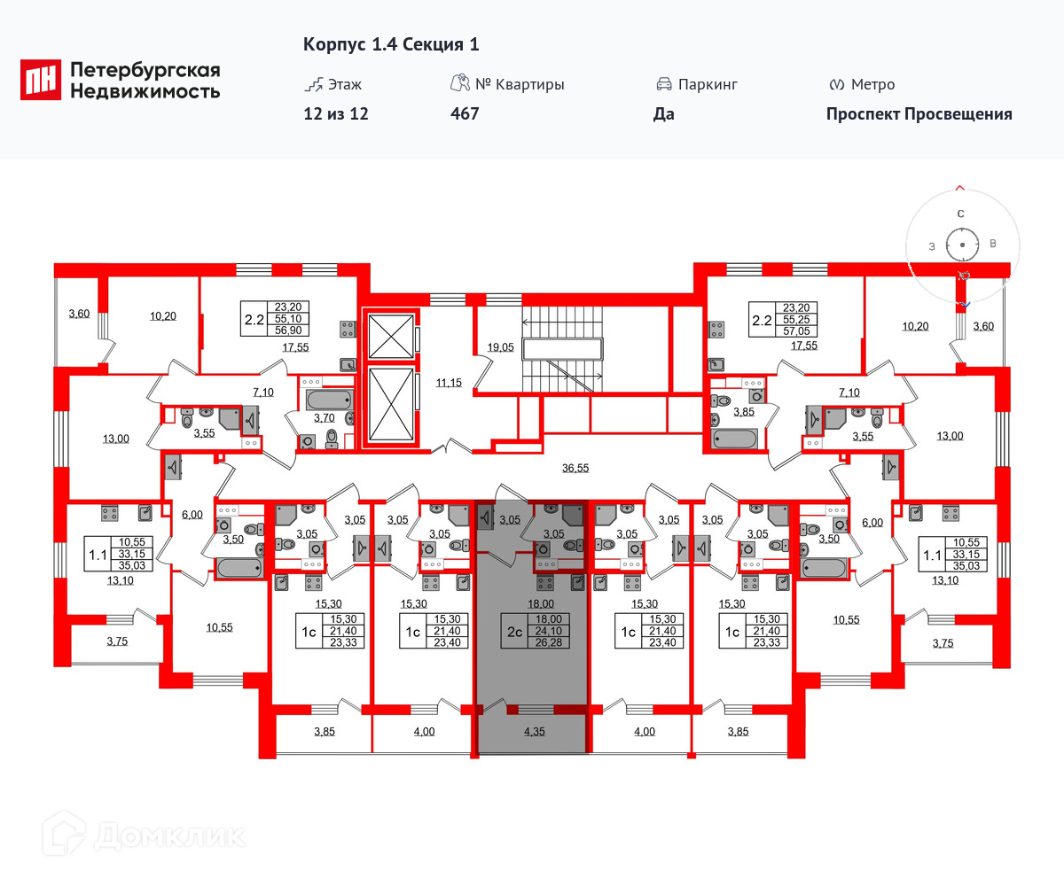 Площади квартир