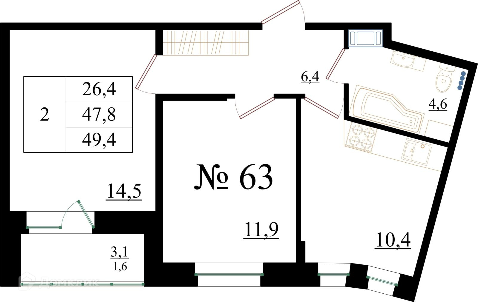 Планировка 1 комн. в ЖК Орловский бульвар