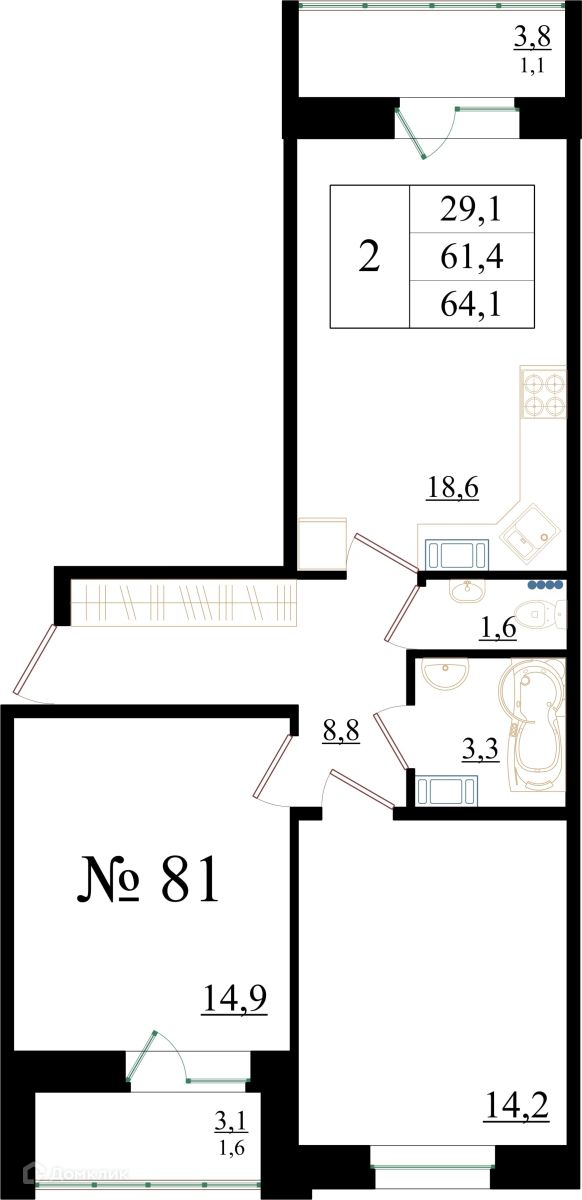 Площади квартир