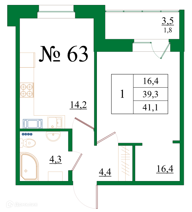 Планировка 1 комн. в ЖК Орловский бульвар
